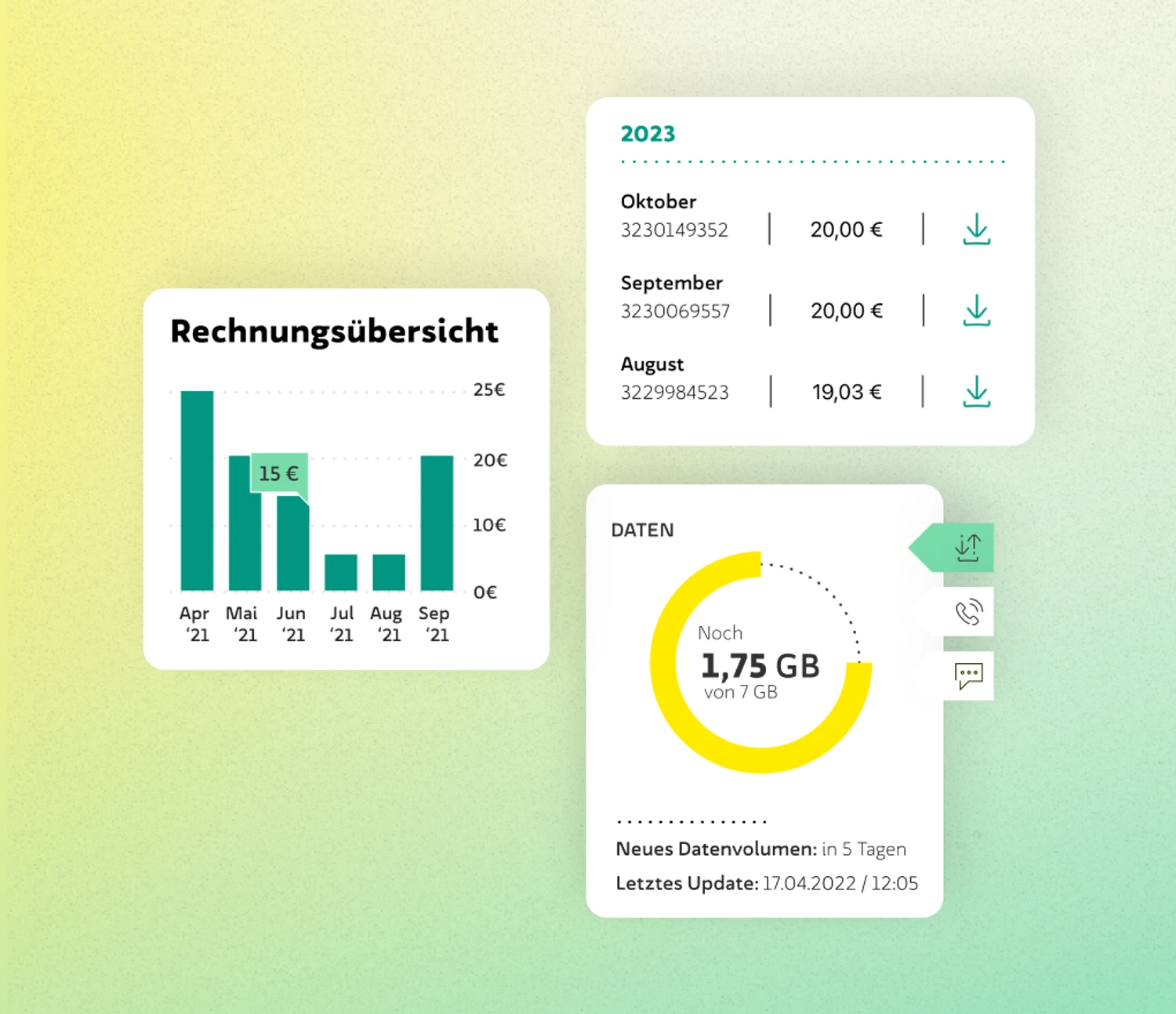 Optionen, Datenvolumen, Rechnungen; aufbereitet so, dass jeder sofort versteht, was Sache ist. - 🧠